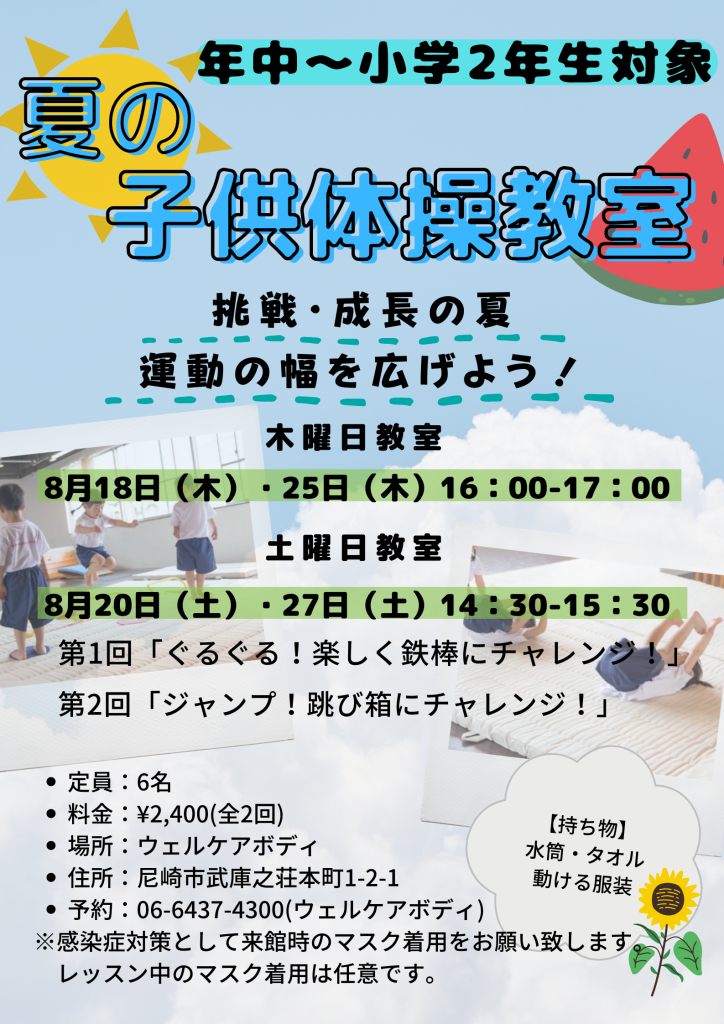 「夏の子供体操教室」を開催します。